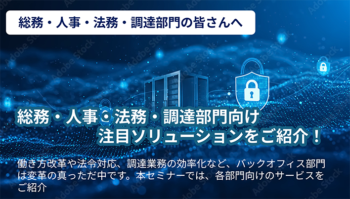 働き方改革や法令対応、調達業務の効率化など、バックオフィス部門は変革の真っただ中です。本セミナーでは、各部門向けのサービスをご紹介します。2025年12月と2026年1月にアーカイブ配信します。