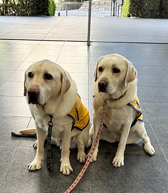 1月22日、特別社員「心のバリアフリー大使」の介助犬ルーク君が本社ビルに出社し、ファシリティドッグのボーディちゃんと一緒に活動を実施しました。