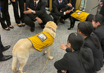 介助犬を初めて目にする新入社員も多く、実際に間近で触れ合う中で、「補助犬について理解が深まった」「身近に感じることができた」といった声が聞かれました。ふれあいを通じて、心のバリアフリーや補助犬への関心を高める機会となりました。