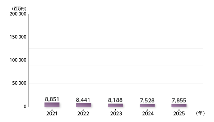 | 有利子負債 | 8,895 | 8,851 | 8,441 | 8,188 | 7,528 |