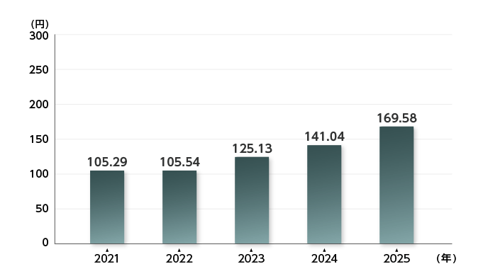 | 1株当たり当期純利益 | 103.66 | 105.29 | 105.54 | 125.13 | 141.04 |