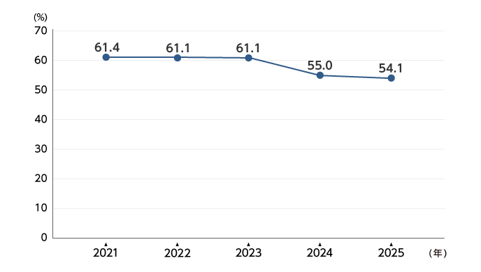 | 自己資本比率 | 58.8 | 61.4 | 61.1 | 61.1 | 55.0 |