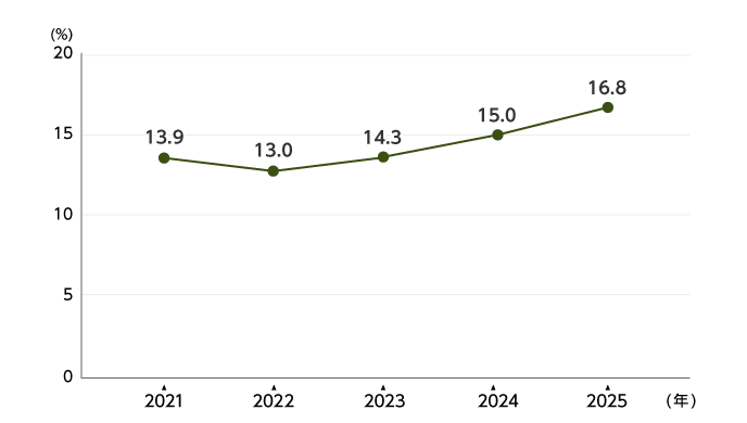 | 自己資本当期純利益率(ROE) | 14.6 | 13.9 | 13.0 | 14.3 | 15.0 |