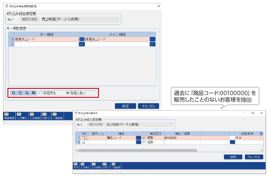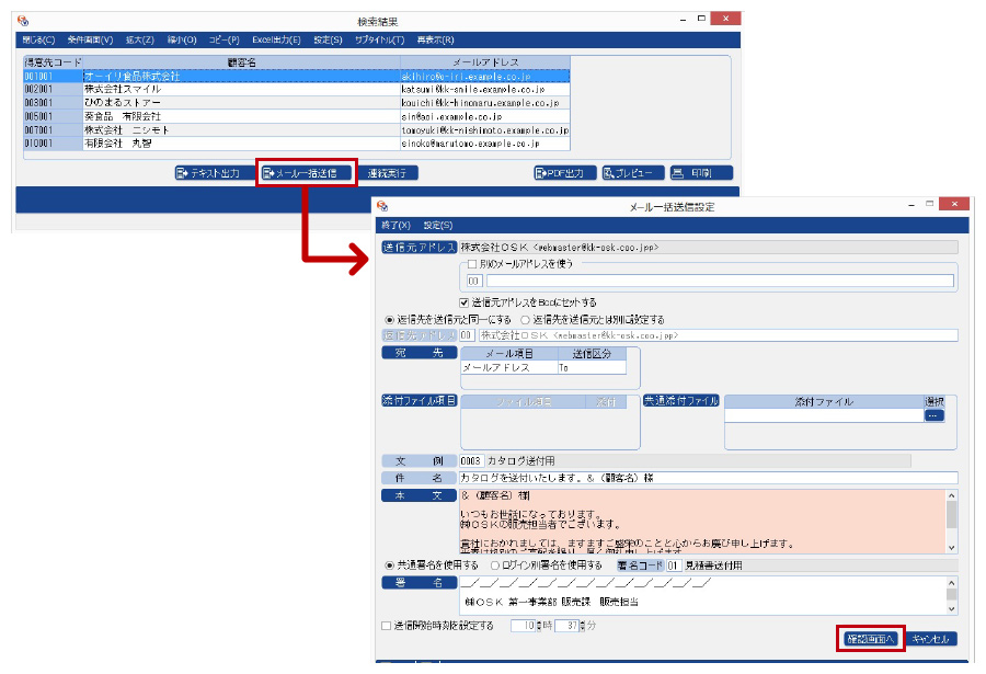 メール配信時にはあらゆる条件で得意先を抽出することが可能です。例えば「過去にA商品を販売し、3年経過している」お客様へ新製品の案内を送るなど、効果的なマーケティング活動を支援します。