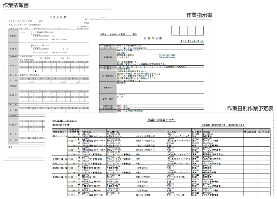 外注先や社内へ向けて、作業手配情報、作業予定情報を作業依頼書として出力することができます。得意先別や仕入先別に作業予定表を出力したり、作業手配に対する作業指示を印字したりすることも可能です。作業予定の的確な管理、適切な作業指示を行えます。