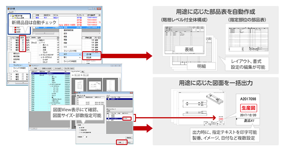 お客様のノウハウが凝縮された設計資産の標準化・流用化をサポートします。品目台帳の構築・整備・共有化によって部品の標準化を図り、コストやものづくりを意識した部品構成表の作成が可能となります。