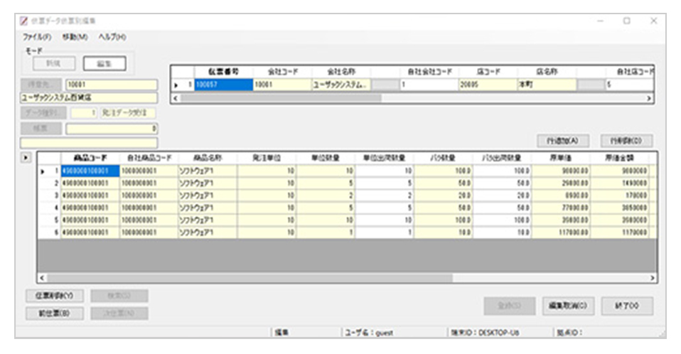 オフライン受注分のデータ入力や、発注数に対する出荷数の入力が可能です。入力、修正したデータは帳票発行機能と連動しています。