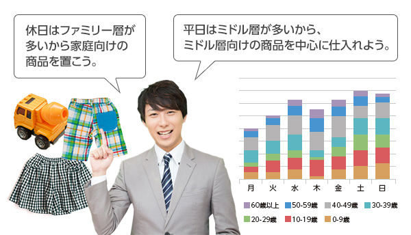 入退場者数カウント、性別・年齢層について、CSVファイルにより出力、さまざまなデータ解析ツールと連携し見える化を実現します。また、製品に添付しているデータ閲覧ツールで、集計結果のグラフを閲覧することができます。