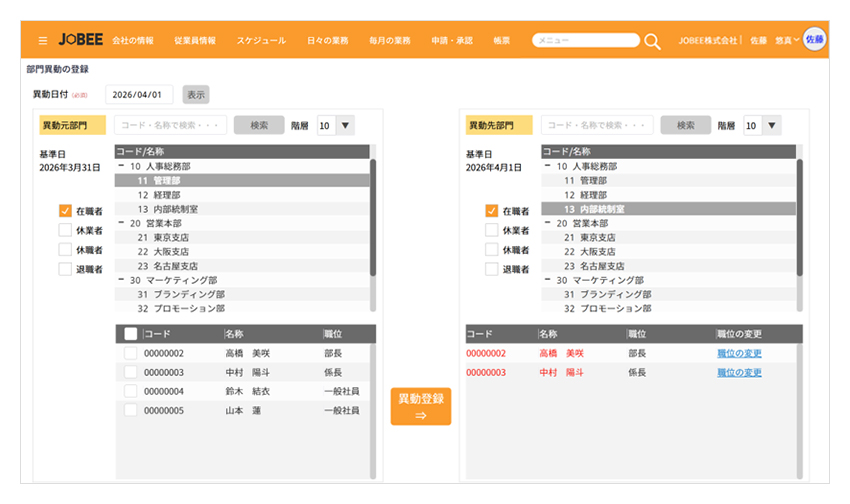 部門異動登録