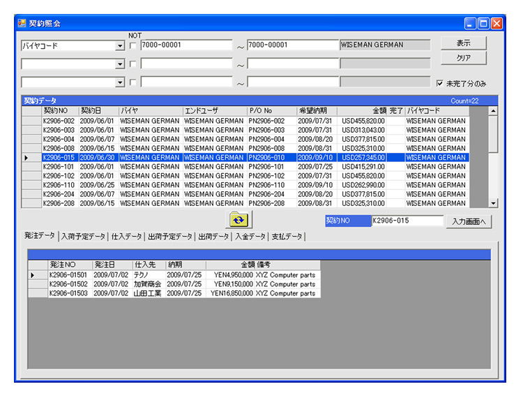 クロス照会機能を利用して契約の中で未発注のデータのみを確認できます。