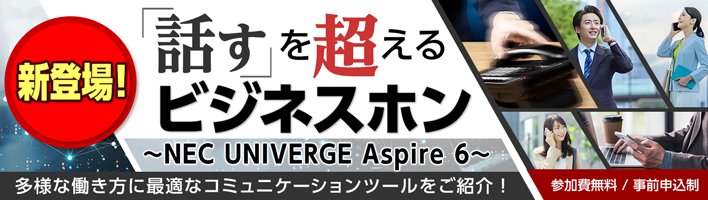 本セミナーでは、7年ぶりにフルモデルチェンジしたNECのビジネスホン「UNIVERGE Aspire 6」が持つ多彩な連携機能を活用し、業務効率・Teams連携・働き方改革を実現する「コミュニケーションパフォーマンス」の向上術をご紹介します。