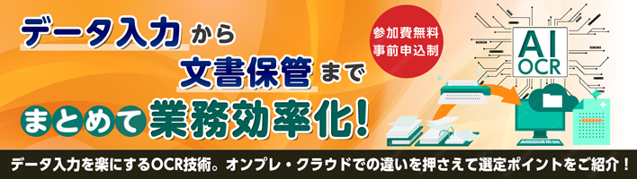 データ入力の負荷を大きく減らしたい方に最適なセミナーです。オンプレミス(以下、オンプレ)・クラウドOCRの違いを分かりやすく整理し、基幹システム入力を楽にするための選定ポイントを実務視点で解説します。第1部はオンプレ型、第2部はクラウド型のOCR製品を解説します。さらに、+αの価値として文書保管まで含めた業務効率化のヒントもご紹介します。