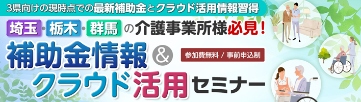 埼玉・栃木・群馬の介護事業所様向けに、活用可能な補助金情報現時点最新版と、業務効率化につながるクラウドサービスの活用ポイントを分かりやすくご紹介します。