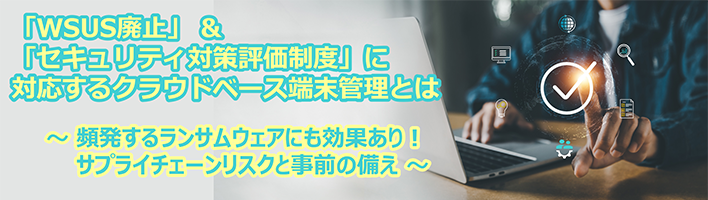 将来的なWSUS(Windows Server Update Services)廃止に伴うWindows更新管理の課題や、セキュリティ対策評価制度への対応に悩んでいませんか? 本セミナーでは、株式会社ハンモック「AssetView Cloud +」を利用したクラウドからのWindows PCの管理手法をお伝えします。セキュリティリスクを低減し、オンプレミス環境からの脱却による管理工数削減をご提案します。