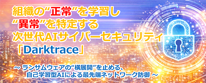 ランサムウェアを含むサイバー攻撃は正規ツール悪用や横展開など高度化し、従来のシグネチャ型対策では検知が困難になっています。本セミナーでは、「Darktrace」が独自の教師なし機械学習をベースに組織固有の「平常」を学習、普段とのふるまいの違いから未知の攻撃や内部不正の兆候をリアルタイムで検知・自律遮断するアプローチをご紹介します。