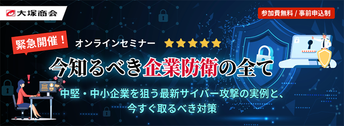 サイバー攻撃は今、中堅・中小企業を狙って急増しています。本セミナーでは、元警視庁による実例解説をはじめ、セキュリティ対策評価制度やバックアップ対策など、企業防衛に必要なポイントを1日で分かりやすく解説します。