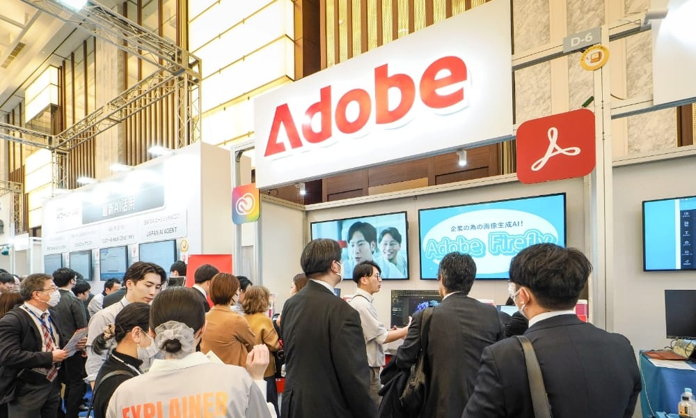 クリエイティブやビジネスの現場において、今や不可欠な製品群を送り出し続けてきたアドビ株式会社(以下、アドビ)。そうした同社のAIに対する取り組みは、多くの企業の注目を集めるところです。2026年2月に東京・大阪の2会場で開催された「実践ソリューションフェア2026」のアドビのブースでは、最新のAI機能を実装した製品群が一堂に会し、「Acrobat Studio」による文書要約・分析とプレゼンテーション資料の自動生成や、「Adobe Firefly」による安全な画像生成など、実務直結のAI技術が披露されました。