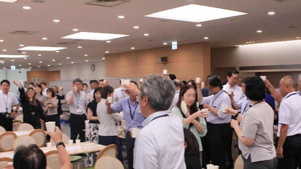 健康増進活動にはもちろん、飲める人も、飲めない人も無理なく気軽に楽しめるこちらのイベント。社員の笑顔や交流の様子からも活気あるコミュニケーションが生まれていることを感じます。